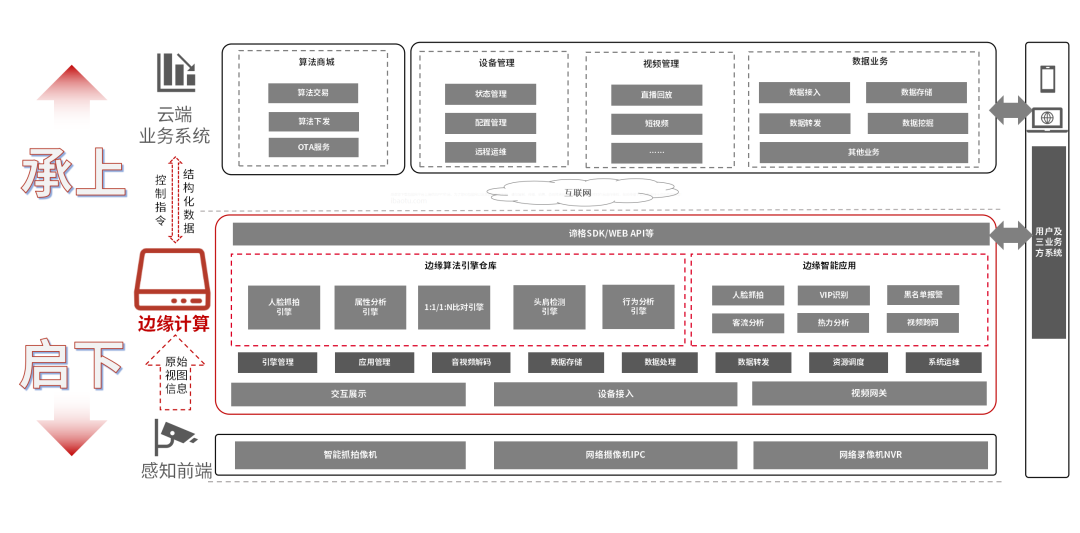 諦格AI定義小站將原始數(shù)據(jù)進行提取、以結(jié)構(gòu)化方式傳送到云端,在云端進行業(yè)務處理,實現(xiàn)前端設備與云端業(yè)務系統(tǒng)整體聯(lián)動,以云邊端一體化、閉環(huán)式高效處理業(yè)務。從架構(gòu)上,作為閉環(huán)式設備,諦格能夠承上啟下,靠近數(shù)據(jù)源、就近解析、實時快速響應。