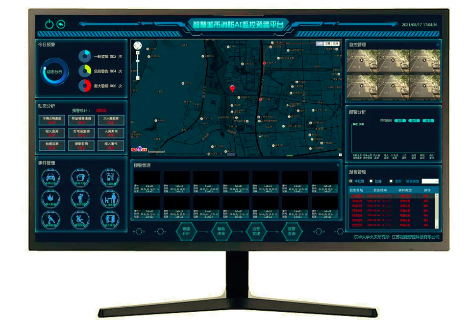 根據(jù)當(dāng)前學(xué)生密集場所實際,按照全過程且實時的智能化、規(guī)范化、精細(xì)化管理的目標(biāo)要求,開發(fā)建設(shè)監(jiān)控平臺,統(tǒng)覽消防安全態(tài)勢感知,實現(xiàn)智慧消防監(jiān)管。