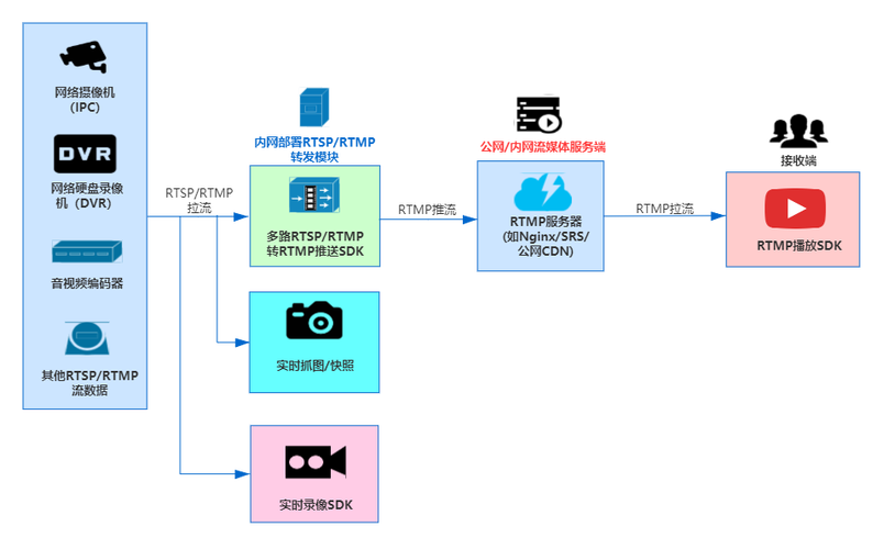 現(xiàn)在的很多業(yè)務(wù)需要的視頻流也是多種多樣,早期的RTSP視頻流已經(jīng)無(wú)法滿足當(dāng)前各種項(xiàng)目應(yīng)用所需。對(duì)于視頻監(jiān)控的畫(huà)面,我們可能會(huì)根據(jù)不同的業(yè)務(wù)場(chǎng)景,用到FLV,HLS,WebRTC,SIP,RTMP等視頻流。這都是無(wú)法直接從攝像頭獲取的。