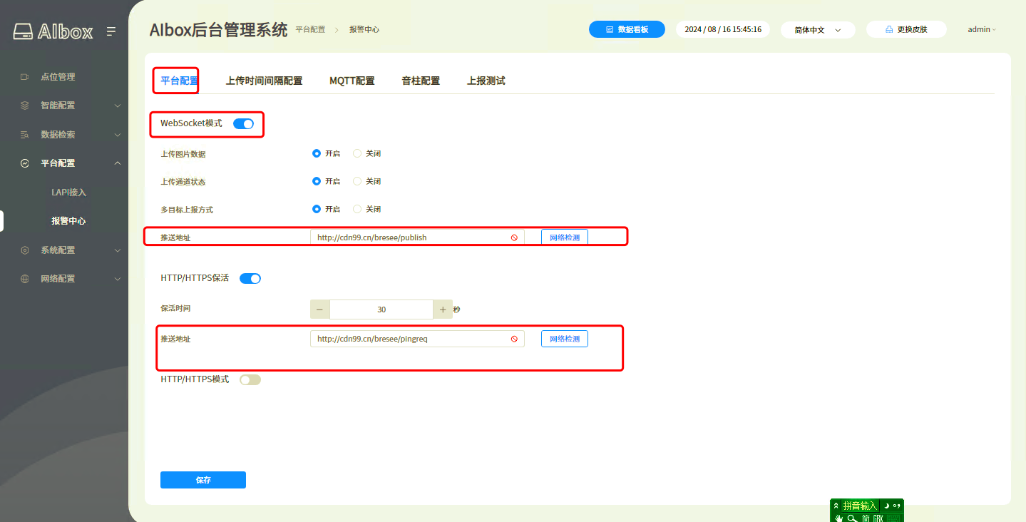 支持websocket、http/https對接,具體參照配套接口文檔