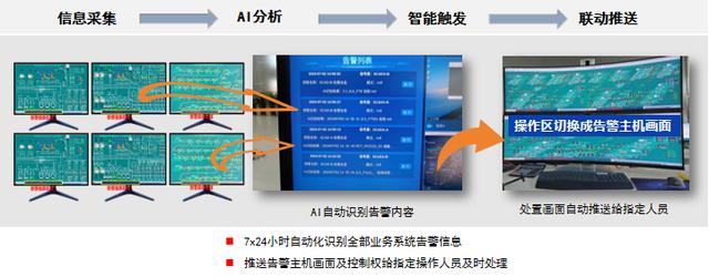 主動敏銳的“信息找人”。系統采用AI技術識別和告警推送,將SCADA等系統的各類告警信息提煉加工,自動判斷警情的級別、類別和責任部門,自動執(zhí)行預定義的業(yè)務處理流程,將告警信息推送給對應的調度員,操作區(qū)自動切換成告警主機畫面。