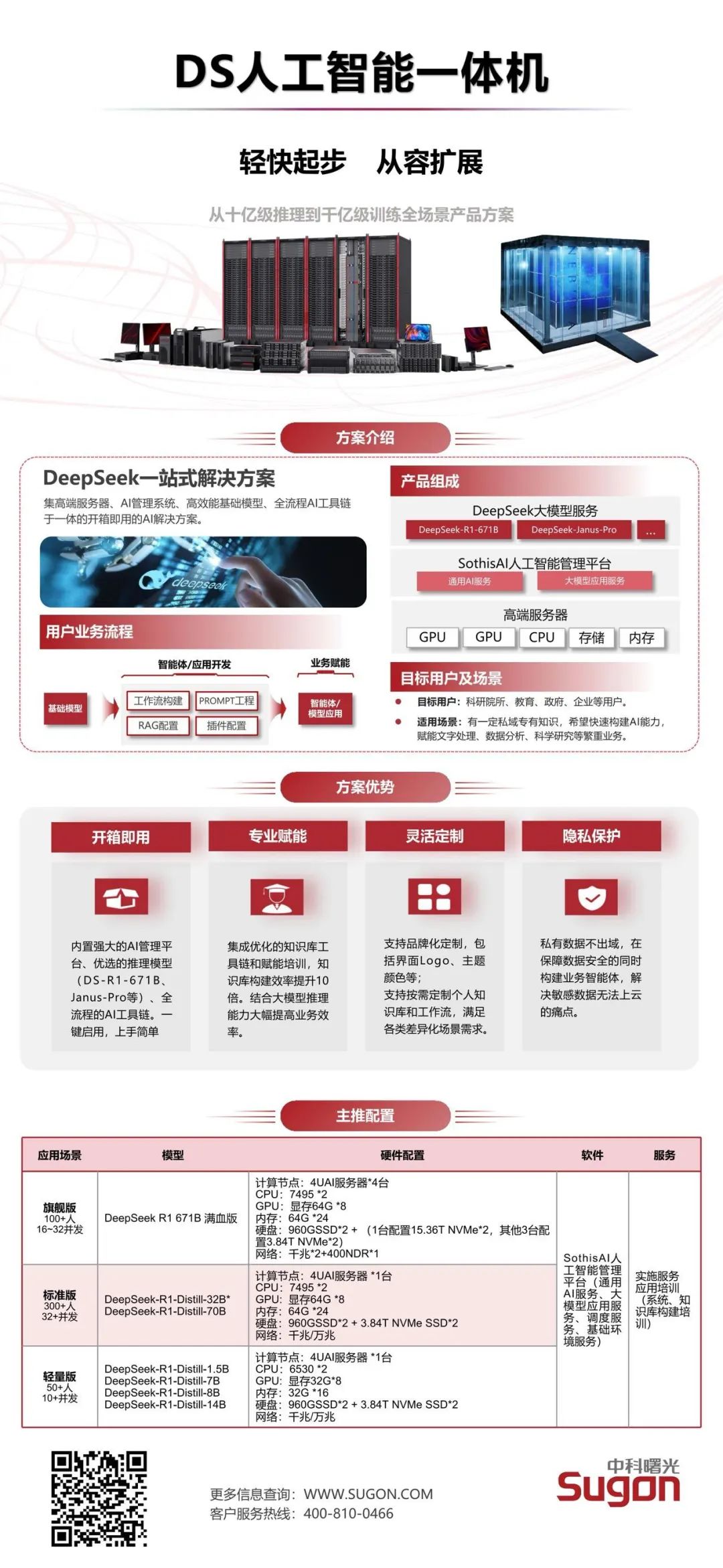 從“業務數字化”到“決策智能化”,再到“生態重構”,曙光DeepSeek一體機兼顧通用能力與場景適配,既能滿足當前高校日常教學與管理的智能需求,也為未來高校科研創新奠定了堅實算力基礎。