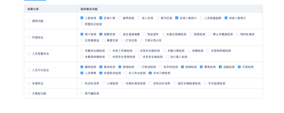 AI校園安全管理系統致力于構建一個數字化、智能化、高效的安全保障體系,以應對日益復雜的校園安全挑戰。實現7x24H實時分析識別入侵、校園霸凌、打架斗毆、攀爬圍墻、跨越欄桿、人群過度擁擠、邊界跨越、煙霧、火災、公共財產破壞等異常事件,并及時觸發警告,通知相關人員采取應對措施,保障校園安全穩定。智能邊緣網關在校園安全常用AI算法如下: