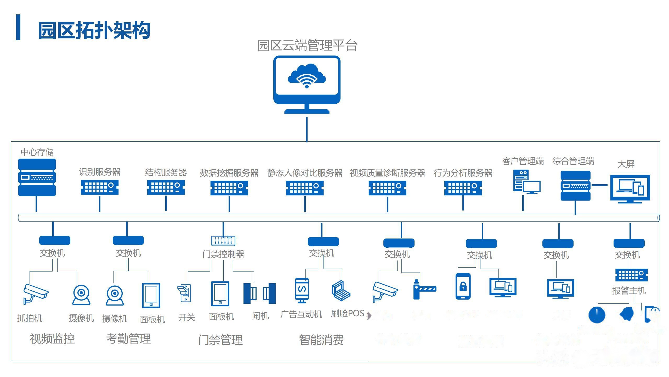 智慧園區(qū)AI智能安防監(jiān)控系統(tǒng)解決方案通過融合物聯(lián)網(wǎng)、大數(shù)據(jù)、云計(jì)算、人工智能等前沿技術(shù),構(gòu)建了一個(gè)全域感知、智能分析、快速響應(yīng)的安防體系,旨在提升園區(qū)安全管理效率、降低人力成本,并實(shí)現(xiàn)安全管理的智能化與精準(zhǔn)化。以下從系統(tǒng)架構(gòu)、核心功能、技術(shù)優(yōu)勢、應(yīng)用場景及實(shí)施步驟五個(gè)方面進(jìn)行詳細(xì)闡述: