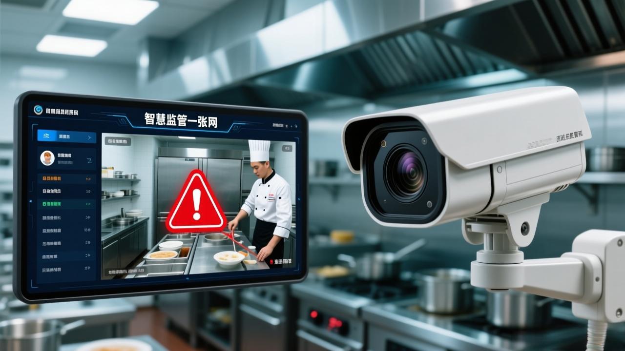 “互聯網+明廚亮灶+AI智慧監管系統”是通過視頻監控、互聯網傳輸與AI智能分析技術,對餐飲單位后廚進行實時可視化監管與風險預警的綜合性解決方案?。該系統將后廚操作過程透明化,結合AI算法自動識別違規行為,實現政府監管、企業自律與公眾監督的協同共治,有效提升食品安全管理水平。